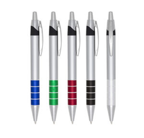 Caneta Plástica com detalhes coloridos corpo em prata – REF9173